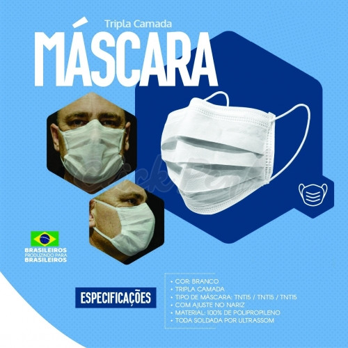 Máscara descartável tripla, do tipo TNT15, elásticos do tipo roliço recobertos de algodão que garante melhor conforto durante o uso, com ajuste no nariz. Disponível em tamanho único. Material 100% Polipropileno, toda soldada por ultrasom. A máscara é um equipamento de proteção das vias aéreas superiores, que impede a dispersão de gotículas e ajuda na prevenção da disseminação de doenças e infecções. Ideal para empresas de todos os segmentos que buscam promover a conscientização pelos cuidados pessoais e que além disso se preocupam com a saúde de clientes e colaboradores.
