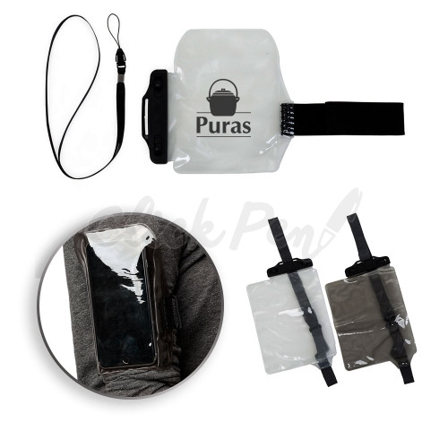 Braçadeira impermeável para celular e acessórios. Material pvc de frente transparente e verso fosco, velcro ajustável para braçadeira, acompanha cordão de nylon caso necessitar trocar o modo de utilização. Suporte plástico preto com on << e >> off indicando os lados para abrir/fechar a capa.