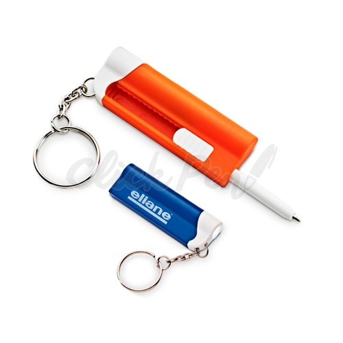 Chaveiro. Com LED e esferográfica. Incluso 3 pilhas LR41.