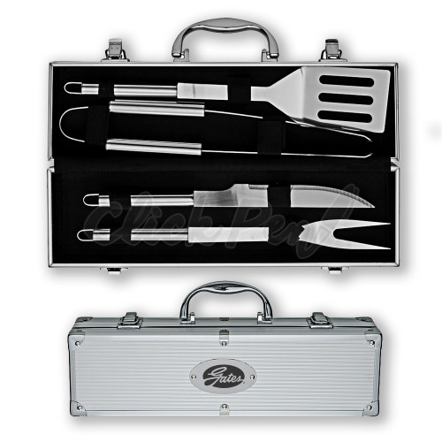 Quer levar elegância e sofisticação para os churrascos em família ou corporativos? Ofereça a todos esse kit em inox, com estojo metalizado. Um brinde diferenciado com a sua marca impressa!