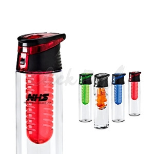 Squeeze produzido a partir de plástico reciclado, rPET. Com alça de silicone para facilitar o transporte. Tampa em PP e aço inox com isolante em silicone. Capacidade até 590 ml. ø66 x 230 mm